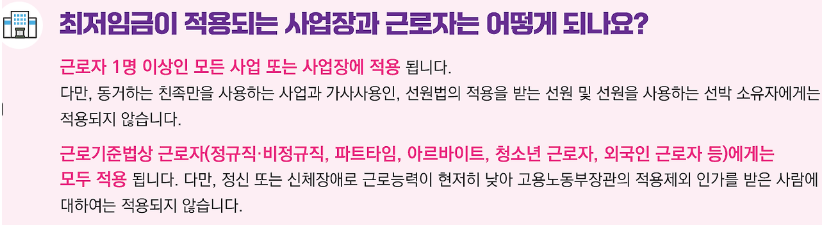 - 최저임금은 고용노동부의 심의를 통해 매년 조정됩니다.